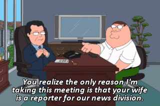 You realize the only reason I'm taking this meeting is that your wife is a reporter for our news division. You have absolutely no prior credits.