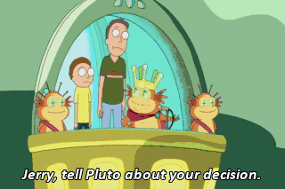 Jerry, tell Pluto about your decision. Um... Pluto's a planet. Pluto's a fucking planet, bitch! Oh, man. This is definitely gonna go to his head.