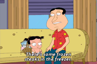 There's some frozen steaks in the freezer.