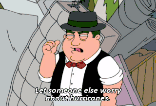 Let someone else worry about hurricanes. Who'd buy a wrecked bar? The bar's not wrecked. All right! Oh, thank you, God. Don't mention it. Wait a minute. Something's different.