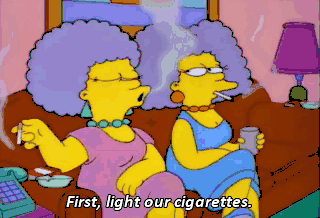 First, light our cigarettes. But you're already smoking cig-- You're really pushing it. Come on, Homer. You can't spell obsequious without I.O.U.