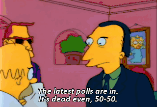 The latest polls are in. It's dead even, 50-50. This cornball stunt is gonna put us over the top.
