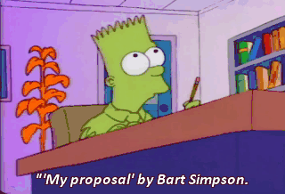 "'My proposal' by Bart Simpson. "I want to pretend... - "I am a regular dumb kid. - Period.