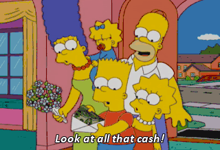 Look at all that cash! And now it's time for me to leave! What a delightful sprite! (SNORING)