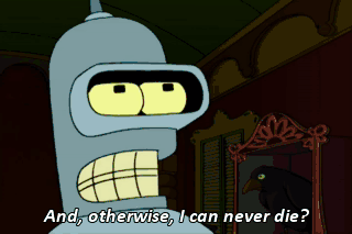 And, otherwise, I can never die? Who said that? Sure you can die. You want to die? No! I want to live. There's still too many things I don't own.