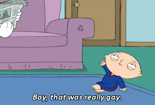 Boy, that was really gay. No, no! Didn't you just hear the announcers? They said it's not gay. Stewie one, you zero.