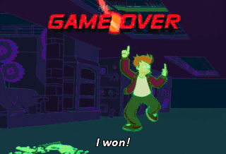 I won! I'm the greatest! Come on. We have work to do.