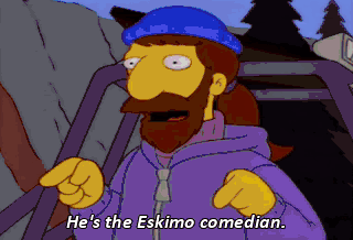 He's the Eskimo comedian. Faster, Mom! Faster! Oh, that was our emcee, Mel Zetz. He got out of bed too fast and broke his hip. So who's gonna warm up the crowd tonight? Well, whoever fits Mel's tuxedo.