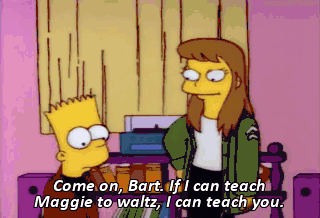 Come on, Bart. If I can teach Maggie to waltz, I can teach you. just follow me. Put your hand on my hip.