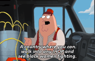 A country where you can walk into any IHOP and see black women fighting.