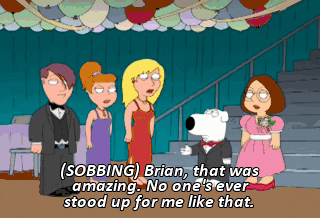 (SOBBING) Brian, that was amazing. No one's ever stood up for me like that.