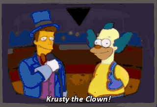 Krusty the Clown! I'll be played by jimmy Smits. Now he faces his toughest audience-- three Siberian tigers. Simba, on the ball. Aaah!