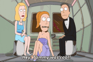 Hey, Tammy was cool! And now we know why. Because of you! Fuck you, Summer, and fuck the government, and fuck me for letting my guard down, which Iwill never do again. Geez, Rick!