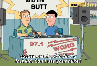 Excuse me, I gotta find a lost kid. Can I use your mike? That's what she said.