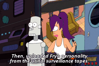 Then, uploaded Fry's personality from the urinal surveillance tapes. I sure love Leela.