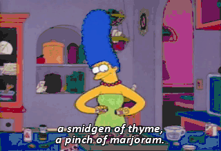 a smidgen of thyme, a pinch of marjoram.
