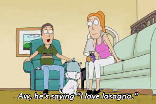 Aw, he's saying "I love lasagna." He's saying "I love Obama." So cute!