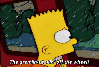 The gremlin's takin' off the wheel! Stop the bus or we're all gonna die! Aaah! Take me bridle and lash his hands to the seat! Would you like another lick of my flavor wax? Uh, sure.