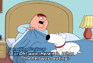Oh, wait. Here it is. What the hell was I eating? (BLEATING) Oh, sorry.