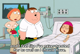 and I feel like I've never treated her as well as I should have. Hey, Meg, you got something on your shirt. (LAUGHING) Hi, Dad. Don't be too hard on yourself, Peter. We all do things that we're not proud of.