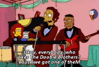 Okay, everybody, who likes The Doobie Brothers? 'Cause we got one of theM. What a wonderful evening. A magical way for two people to renew their love. Marge is right.