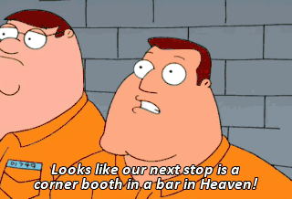 Looks like our next stop is a corner booth in a bar in Heaven! Peter, Nigel confessed! You're free! You hear that, guys? We're free! Freedom!