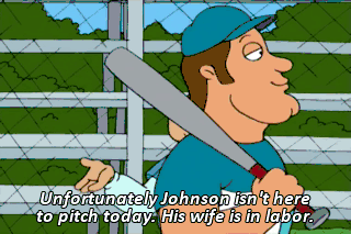 Unfortunately Johnson isn't here to pitch today. His wife is in labor.