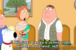 His sister Brenda is coming with her boyfriend, Jeff. Oh, my God, not that guy.