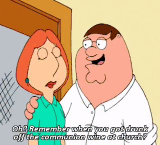 Oh? Remember when you got drunk off the communion wine at church? STEWIE: Ah! Ew! Gross! Look at that.