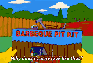 Why doesn't mine look like that? Why? Da-- Why? Why must life be so hard? Why must I fail in every attempt at masonry? How's your father's project coming along?