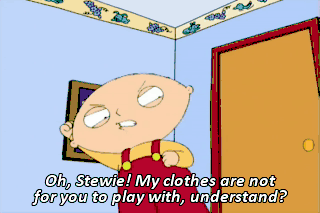 Oh, Stewie! My clothes are not for you to play with, understand?