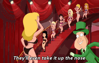 In Canadian nudie bars You can touch and squeeze 'em They don't even care Would they even dye their pubes to match my hair?
