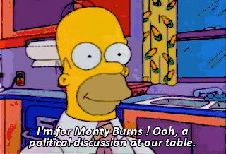 I'm for Monty Burns ! Ooh, a political discussion at our table.