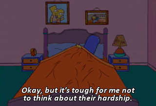 Okay, but it's tough for me not to think about their hardship. (BOTH MOANING)
