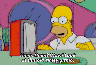 Hmm. Hmm? Wow! Look at this old-timey gizmo. I feel like I've gone back in a time machine. Dad, they have those everywhere.