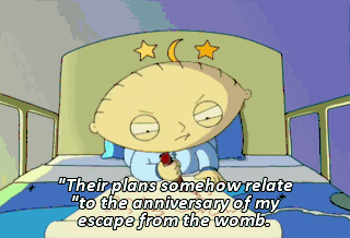 "Their plans somehow relate "to the anniversary of my escape from the womb. "I'm still haunted by the memories "of how I was incarcerated "in that amniotic Attica.