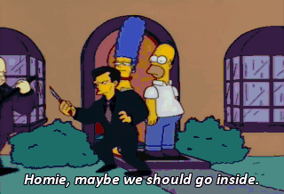 Homie, maybe we should go inside. But, Marge, that little guy hasn't done anything yet. Look at him. He's gonna do something, and you know it's gonna be good. Aw.
