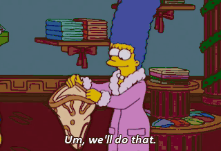 Um, we'll do that. Stand back when you open it. Doing pretty good so far. A key ring for Marge, key ring for Bart... (GASPS)