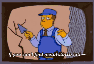 If you can't find metal stucco lath-- Uh-huh? use carbon-fiber stucco lath. Ohh! Now parge the lath. Did you see the bubble? Yeah, I'm afraid the whole west side of your house is sinking.