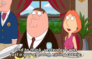 And to think, yesterday I was just a guy at home eating catnip. Excuse me, Mr. Pewterschmidt, but you're no longer a member at this club. Don't worry, he's my guest.