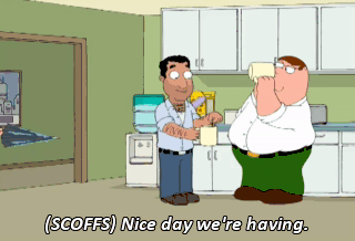 (SCOFFS) Nice day we're having. (CHUCKLING) Oh, yes!