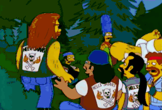 Marge? What do we do here, Marge? He's using violence. Talk to him. Use your words. Homer. Homer, stop it. We've given up our violent ways. We just want to live peacefully with your wife.