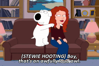 (STEWIE HOOTING) Boy, that's an awfully loud owl. Don't do it, Brian! Take it slow!