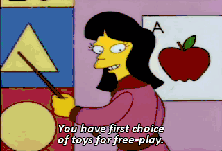 You have first choice of toys for free-play. Cool! I call the Flintstone phone! Yabba dabba doo! I like talkin' to you!