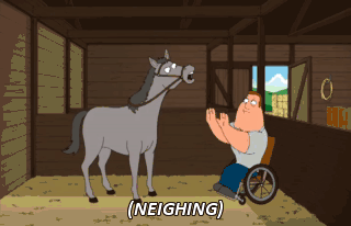 (NEIGHING) Shh, shh, shh. That's right. I bet you're hungry. It's okay. (SNIFFS) That calmed you down, you fucking horse.