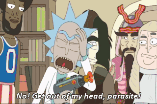 No! Get out of my head, parasite! No! Drop it, Give me the gun, Frankenstein! Give it back! Yeah! Frankenstein!