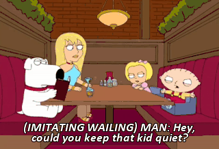(IMITATING WAILING) MAN: Hey, could you keep that kid quiet?