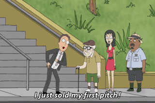 I just sold my first pitch! Slow down! Lookin' good. My man!