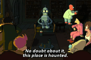 No doubt about it, this place is haunted. Don't be silly, mon. The last ghost died over 200 years ago. The last human ghost, but robot ghosts... 0-1-0-1-1-0-0-1-0-1.
