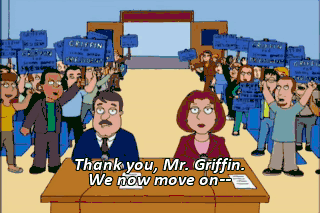 Thank you, Mr. Griffin. We now move on-- W-w-Wait a second, blow dryer, I'm not done yet. She freed Willie Horton, she nailed Donna Rice-- - Peter, that's enough! - Eats babies. Peter! Peter!